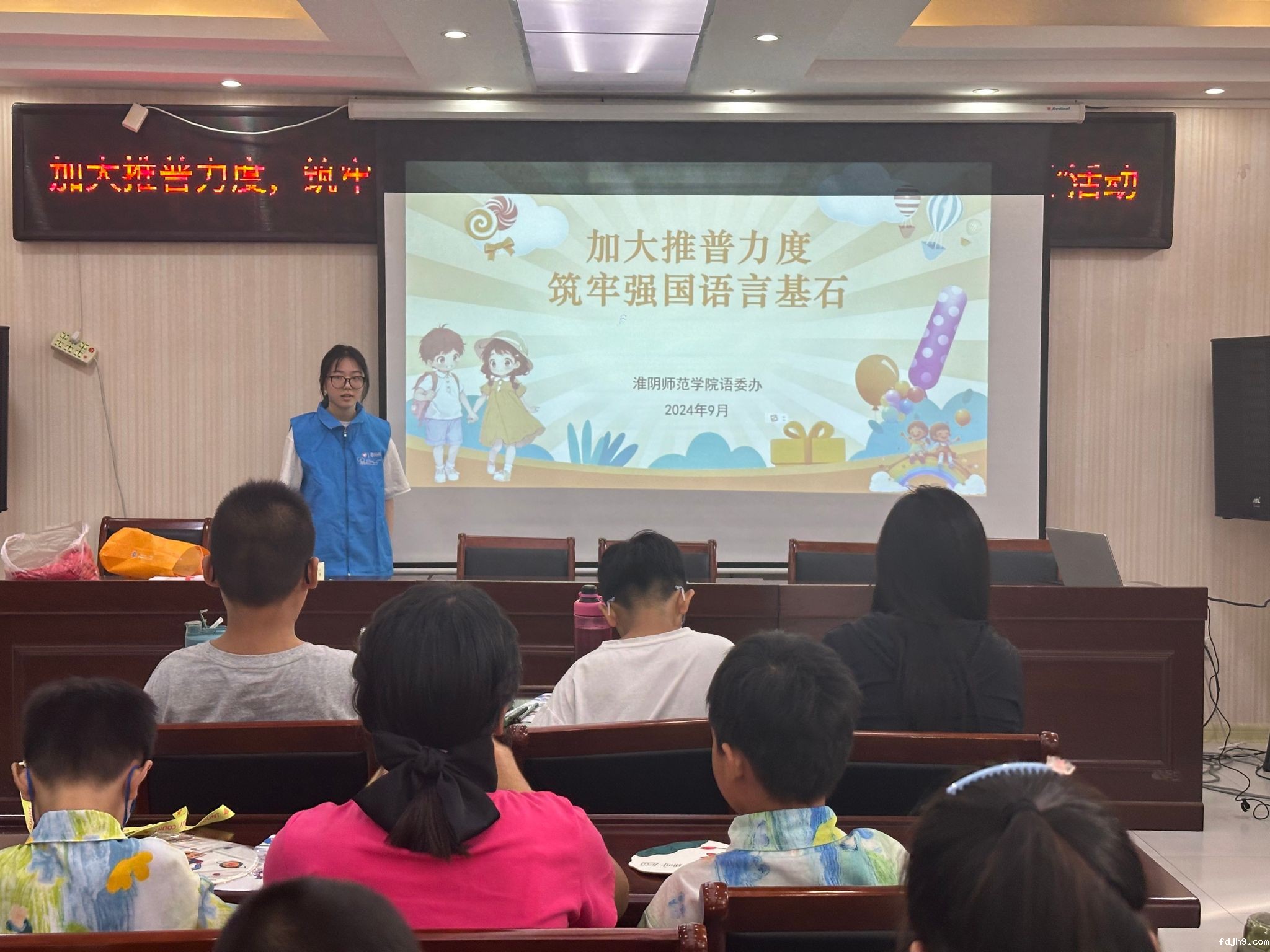 主动深入乡镇街道,贡献新利18彩票青年力量。校语委组织推普团队赴省内外开展了“诵读传经典,推普向未来”推普助力乡村振兴暑期社会实践活动。志愿者们前往学校乡镇社区,走进金湖县前锋镇白马湖中心小学、淮安区范集镇中学、淮阴区王家营街道西坝社区,带领孩子们分别开展了古诗词吟唱教学、规范汉字与普通话培训、周恩来童年故事阅读分享、入户考察调研和政策宣讲等形式多样的活动,助力乡村学校营造传承经典氛围,增强当地民众对普通话的认知和理解。